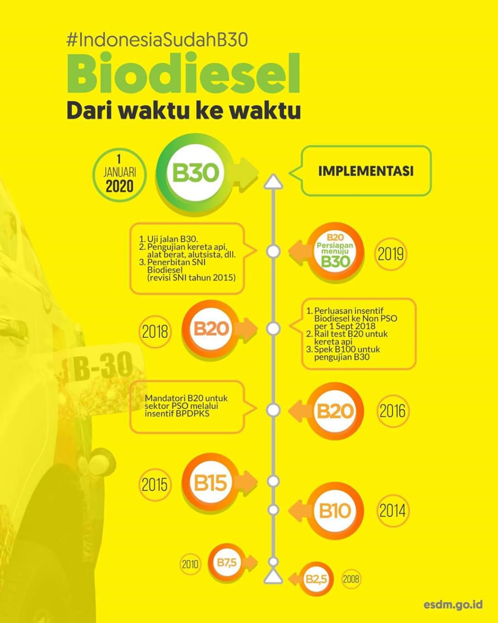 Tahun 2020, pemerintah menetapkan komposisi FAME dari B20 menjadi B30. Artinya, campuran FAME-nya menjadi 30 persen. Kebijakan B30 pada bahan bakar jenis diesel ini diterapkan pada produk Dexlite dan Biosolar, sesuai Kepmen ESDM No 227 Tahun 2019.