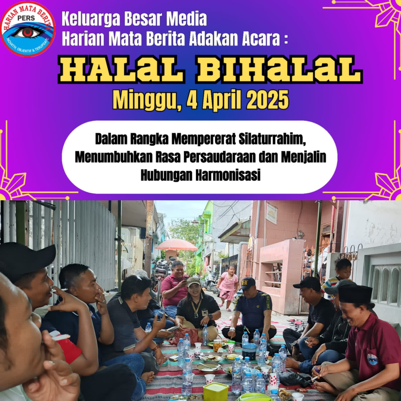 Surabaya.- Halal Bihalal adalah acara atau kegiatan yang dilakukan untuk saling memaafkan atas kesalahan dan kekhilafan di masa lalu. Hal ini sering dilakukan dalam berbagai bentuk, seperti pertemuan keluarga besar, acara kantor, atau kegiatan komunitas, lembaga dan ormas. Guna utamanya adalah untuk mempererat hubungan antar sesama, khususnya di keluarga besar media Harian Mata Berita.