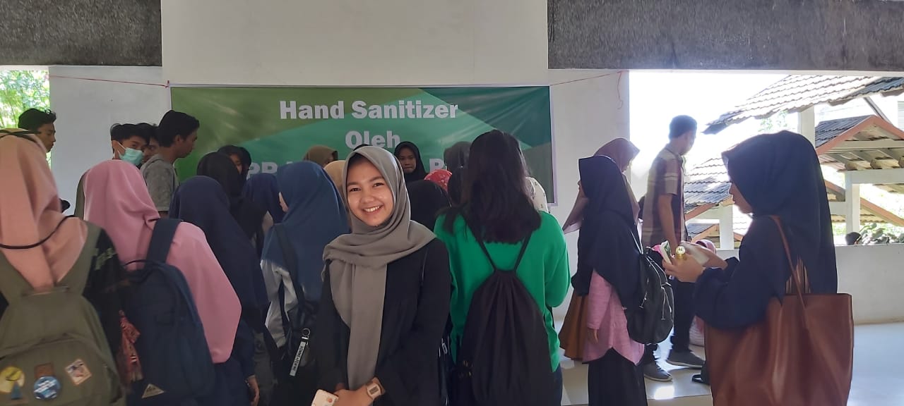 Mahasiswa bahagia dapat gratis hand sanitizer produk Unand didukung DPP IKA Unand, untuk antisipasi virus corona, Jumat 20/3 (foto: dok/ikaunand)