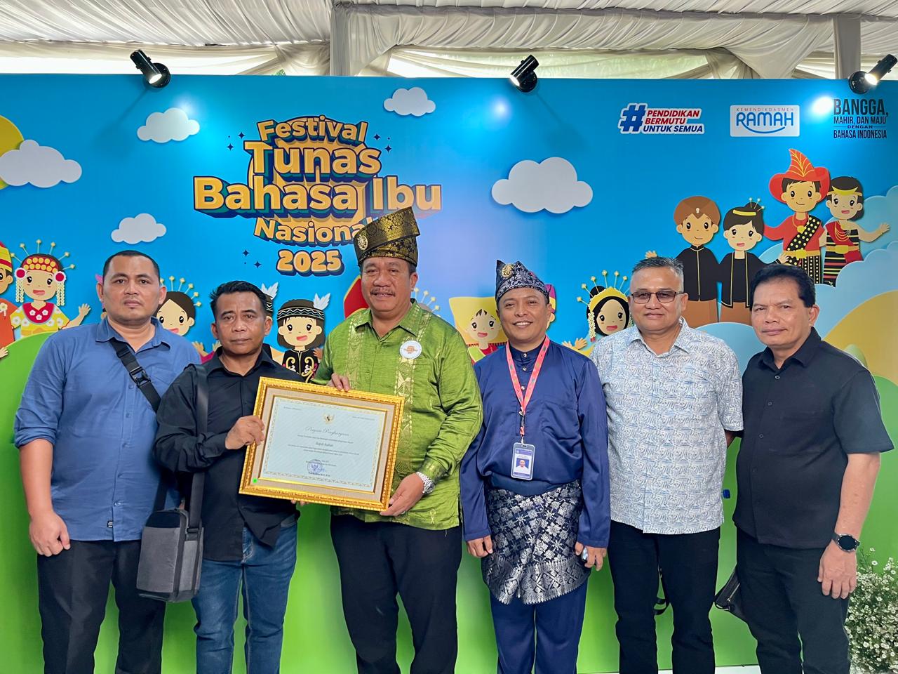 Penghargaan itu diserahkan Menteri Pendidikan Dasar dan Menengah RI Prof. Dr. Abdul Mu’ti M.Ed dalam acara Festival Tunas Bahasa Ibu Nasional (FBIN) Tahun 2025 di Gedung Merah Putih, Bojongsari Depok, Jawa Barat, Senin (26/05/2025).