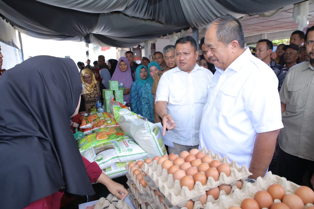 Usai mengikuti zoom, bupati bersama Forkopimda meninjau langsung pelaksanaan GPM di lokasi kegiatan, memastikan masyarakat dapat membeli bahan pangan dengan harga yang terjangkau.(is)