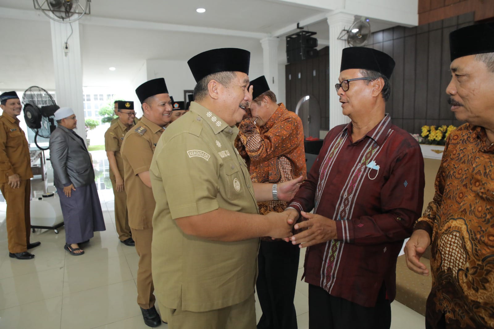 Bupati Asahan Taufik Zainal Abidin menyapa dan menyalami anggota PWRI.(dok/ist)