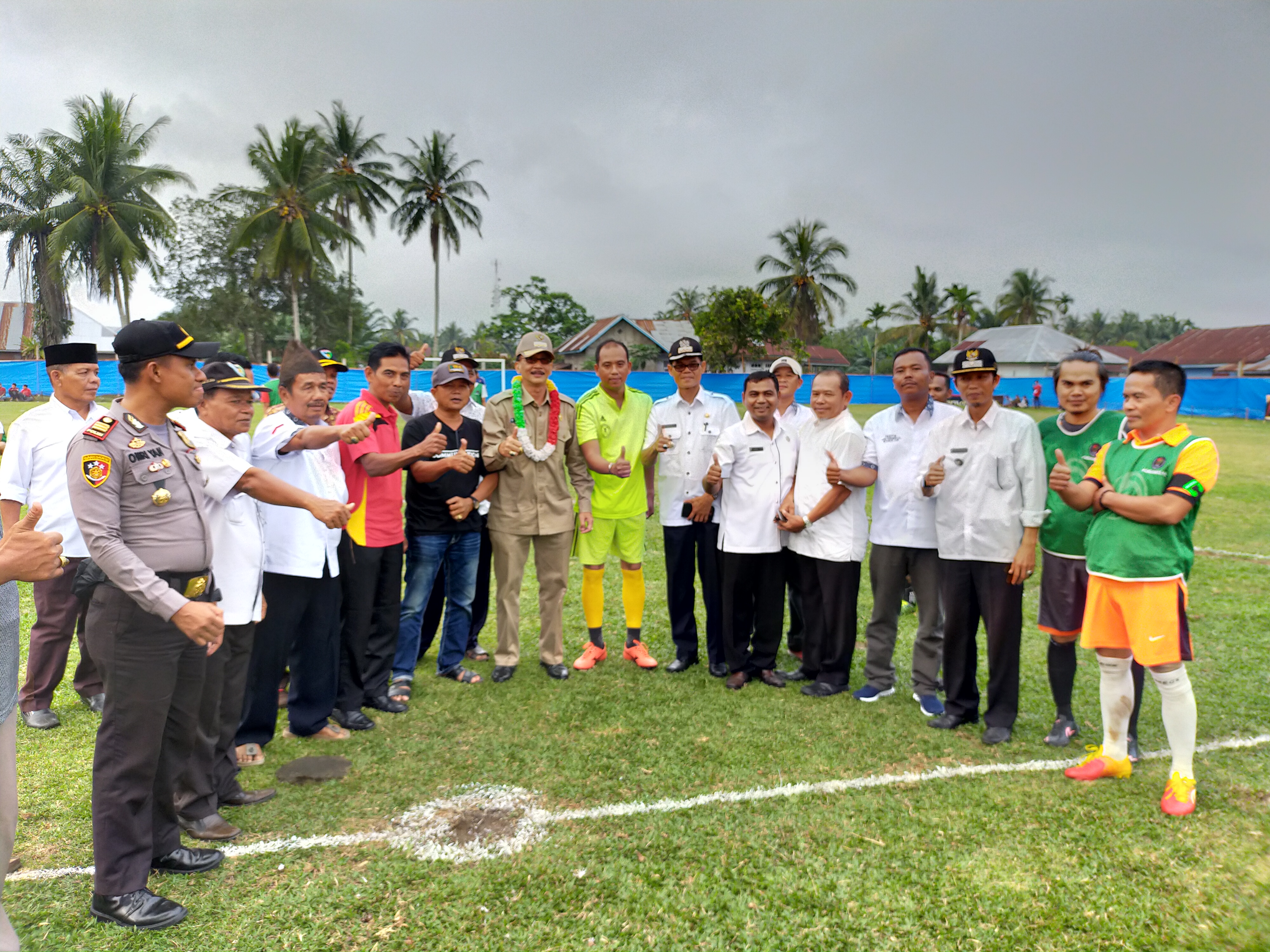 Kedatangan Bupati Hendrajoni yang didampingi Camat Air Pura dan Camat Pancung Soal bersama forkopimca disambut antusias masyarakat yang memadati arena lapangan hijau sepakbola Kampung Batang Talaut Translot Inderapura .