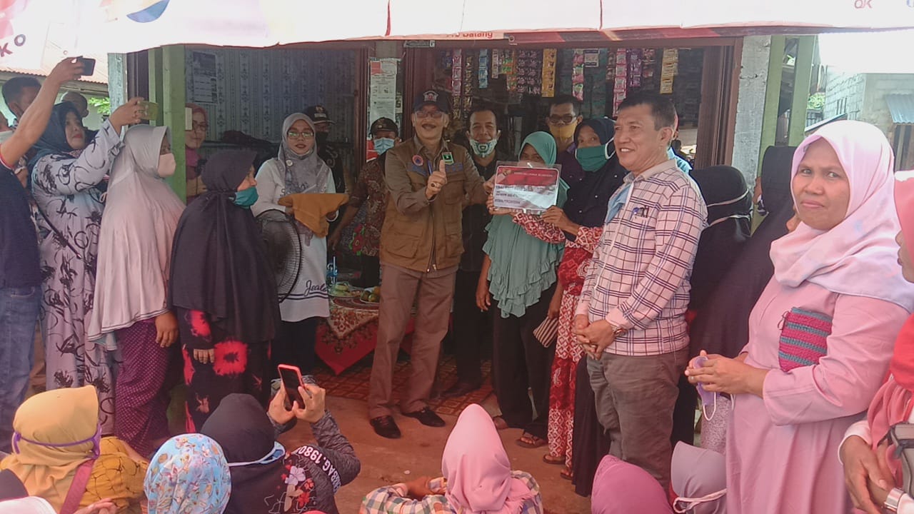 PESSEL, RELASIPUBLIK – Bupati Pesisir Selatan, Provinsi Sumatera Barat, Hendrajoni, menyerahkan kartu sembako kepada keluarga penerima manfaat (KPM) di Kecamatan Air Pura, sebanyak 164 KPM sehingga total penerima menjadi 646 KPM, Minggu (19/7).