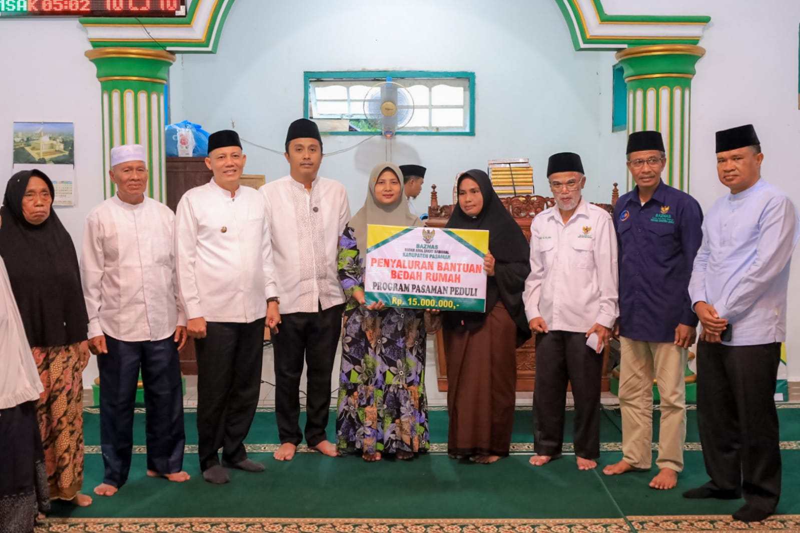 Wagub Sumbar menyerahkan bantuan dari Pemprov Sumbar untuk pembangunan masjid sebesar Rp50 juta dan 20 buah Al-Qur’an.
