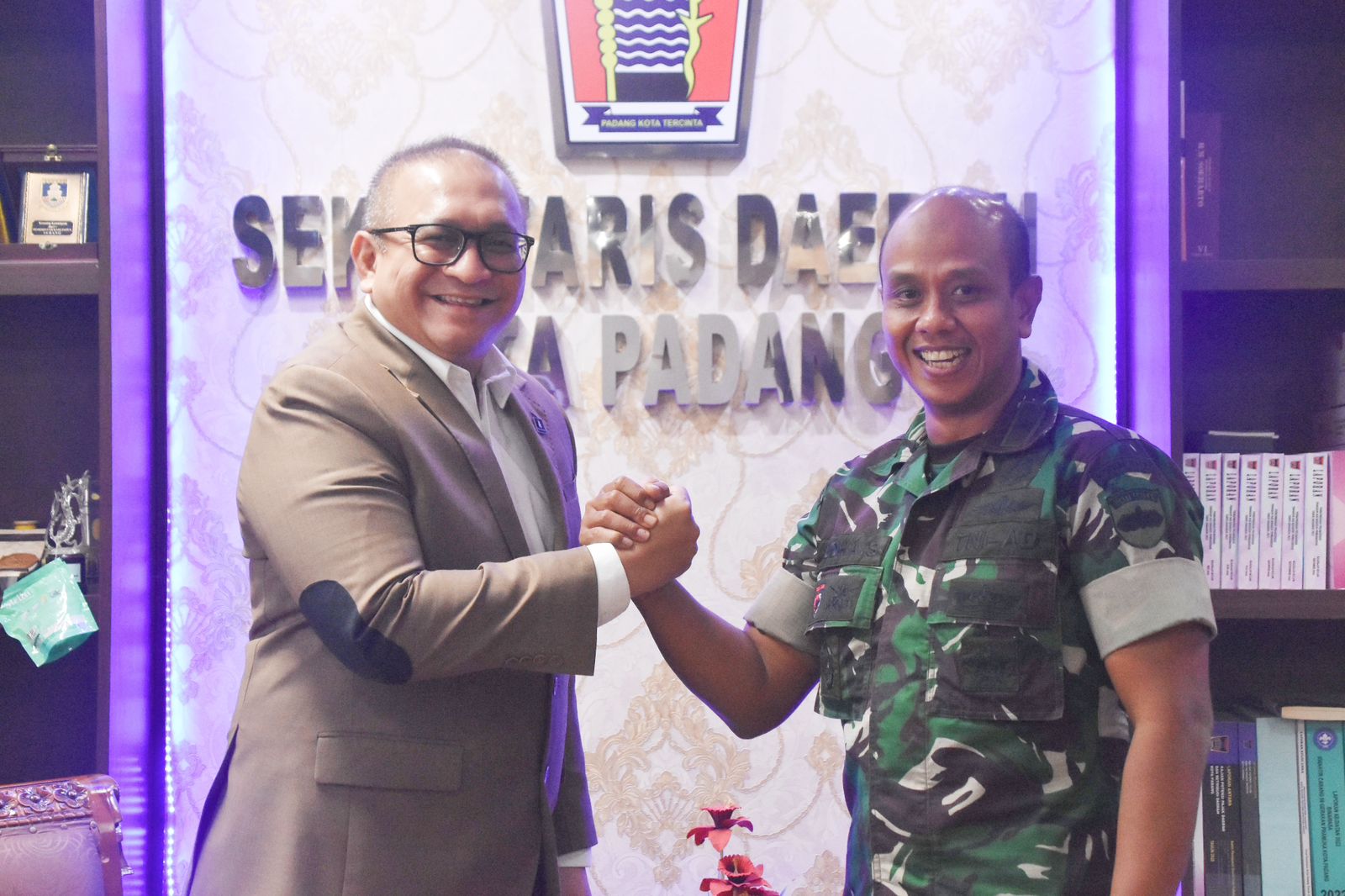 “Saya belum pernah ke Balai Kota Padang, jadi Alhamdulillah di kesempatan ini bisa mampir ke Balaikota dan diterima di ruangan Pak Sekda. Kalau Pak Sekda pasti sudah sering ke ruangan Dandim, jadi sekarang gantian,” ujar mantan Waaslog Kodam XVII/Cendrawasih ini ramah.