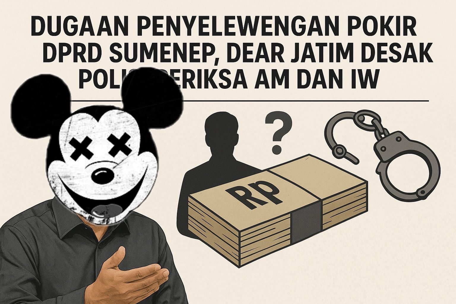 Sumenep – Dugaan penyelewengan dana Pokok Pikiran Rakyat (Pokir) DPRD Kabupaten Sumenep kembali mencuat. Organisasi pemantau transparansi anggaran, Dear Jatim, mendesak aparat penegak hukum untuk segera memeriksa dua oknum anggota DPRD yang diduga terlibat dalam praktik penyalahgunaan proyek aspirasi tersebut.