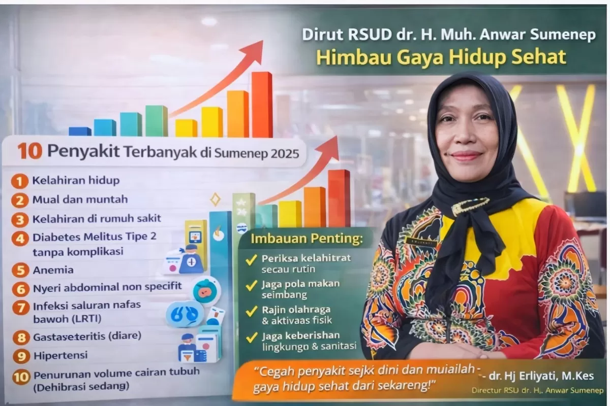 Direktur RSUD dr. H. Moh. Anwar Sumenep, dr. Hj. Erliyati, M.Kes, menegaskan bahwa dominasi penyakit tertentu menunjukkan masih kuatnya pengaruh pola hidup, faktor lingkungan, serta rendahnya kesadaran preventif di tengah masyarakat.