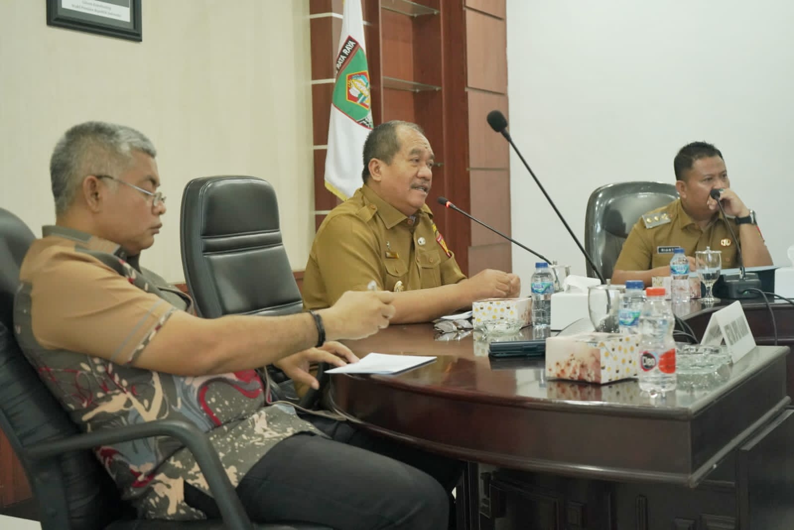 ASAHAN, RELASI PUBLIK– Bupati Asahan Taufik Zainal Abidin Siregar S.Sos, MSi memimpin Rapat dengan Forkopimda (Forum Koordinasi Pimpinan Daerah) di Aula Mawar kantor bupati setempat, Senin (21/04/2025).