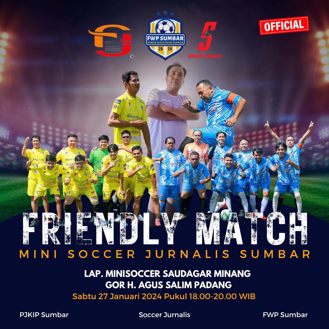 PADANG, RELASI PUBLIK – Akhir pekan ini, Sabtu, (27/1), sesama jurnalis di Sumbar akan saling “bentrok”. Namun, bentrok para awak media ini akan tersaji di lapangan Mini Soccer Saudagar Minang, Gor. Agus Salim, Padang.