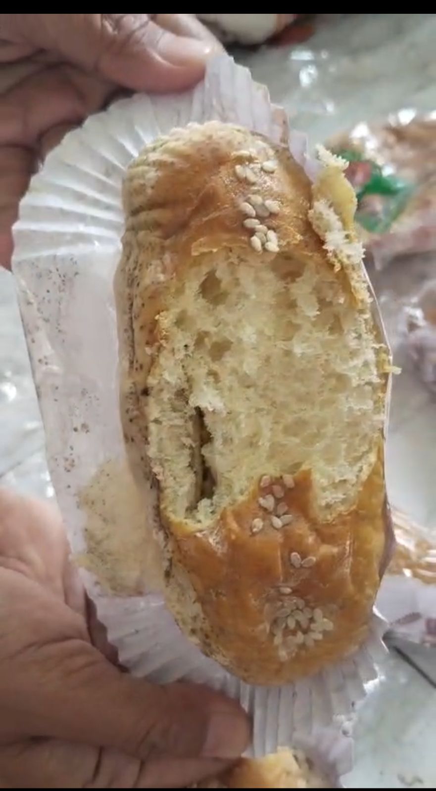 Justru wali murid dibuat panik saat roti bakery yang hendak dimakan oleh anaknya di hari ketiga melihat bentuk sudah berbeda.