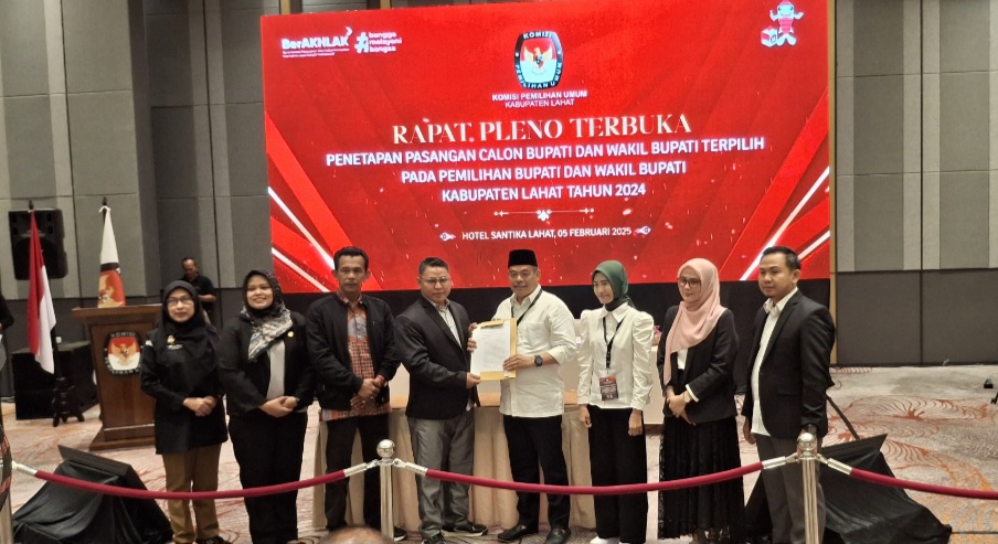 Relasipublik.com | Lahat, – Komisi Pemilihan Umum (KPU) kabupaten Lahat melaksanakan Rapat pleno terbuka penetapan pasangan calon bupati dan wakil bupati terpilih pada pemilihan bupati dan wakil bupati kabupaten Lahat tahun 2024, rabu (05/02/2025) bertempat di ballroom hotel Santika kabupaten Lahat provinsi Sumsel.