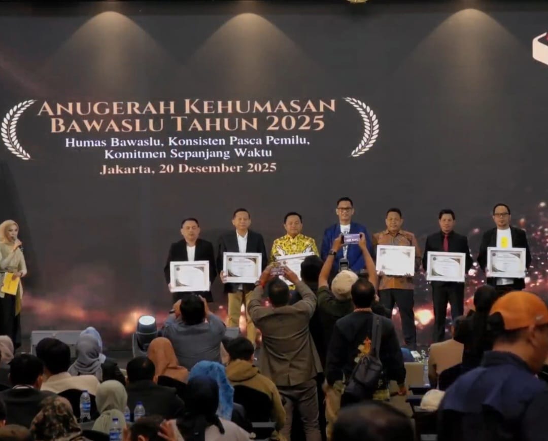 Penerimaan Anugerah Kehumasan Bawaslu Tahun 2025 yang diadakan di Jakarta, pada Sabtu (20/12),