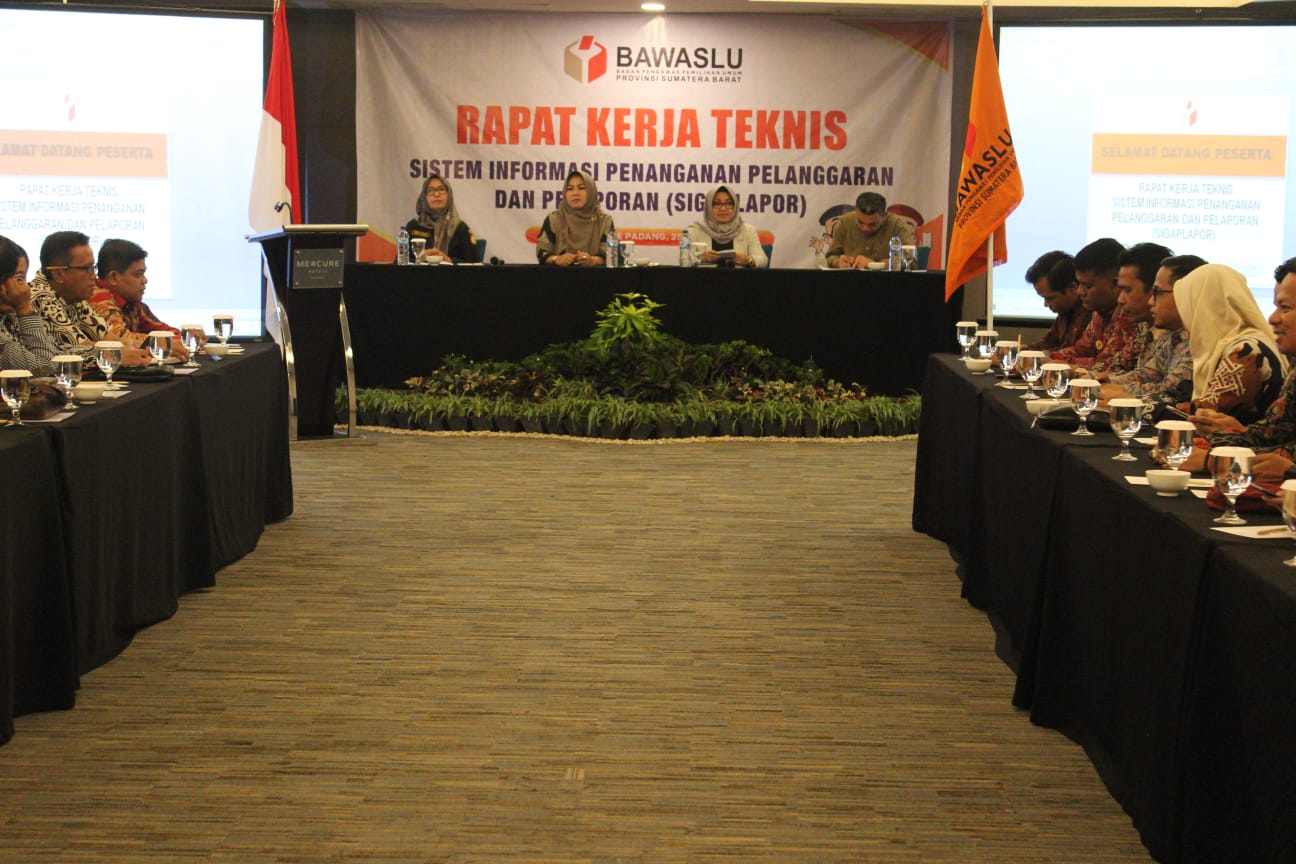 PADANG, RELASIPUBLIK — Badan Pengawas Pemilu (Bawaslu ) Provinsi Sumatera Barat (Sumbar) menggelar Rapat Kerja Teknis (Rakernis) Sistem Informasi Penanganan Pelanggaran dan Pelaporan (Sigaplapor), Selasa (25/10/2022) di Hotel Mercure Padang.