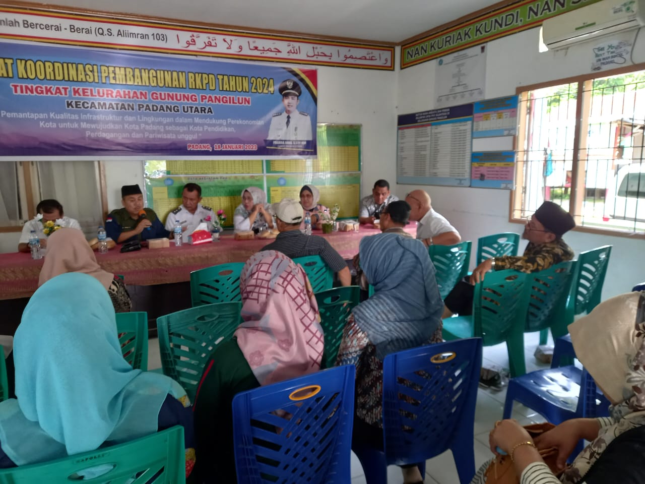 Pada Rakorbang Kelurahan Gunung Pangilun yang digelar Rabu pagi tersebut, hadir Sekcam Padang Utara, Lurah Gunung Pangilun, anggota DPRD Kota Padang, yaitu Osman Ayoeb dan Budi Syahrial dan narasumber dari Bappeda Kota Kota Padang.