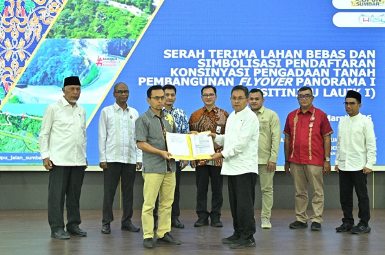 Serah terima lahan bebas dari panitia pengadaan tanah yang diketuai Kepala Kantor Wilayah ATR/BPN Sumatera Barat (Sumbar) kepada Balai Pelaksanaan Jalan Nasional (BPJN) Sumbar sebagai instansi pelaksana proyek.