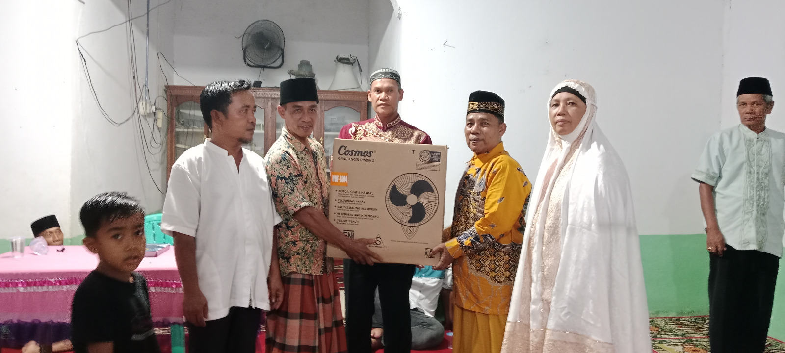 Pemerintah Nagari memberikan bantuan berupa satu unit kipas angin kepada pengurus Mushalla Mutta’alimin. (Dok. in)
