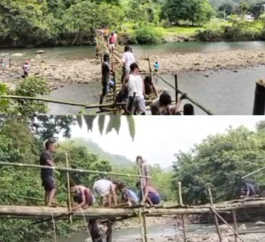 Desa ini dipisahkan oleh sungai tanpa jembatan permanen. Dan karena pemerintah tak kunjung hadir, warga membangun sendiri jembatan darurat dari kayu dan bambu, seadanya. Mereka menyatukan tenaga, mengumpulkan bahan apa adanya, dan bekerja tanpa alat berat atau insinyur. Bukan karena ingin, tapi karena terpaksa.