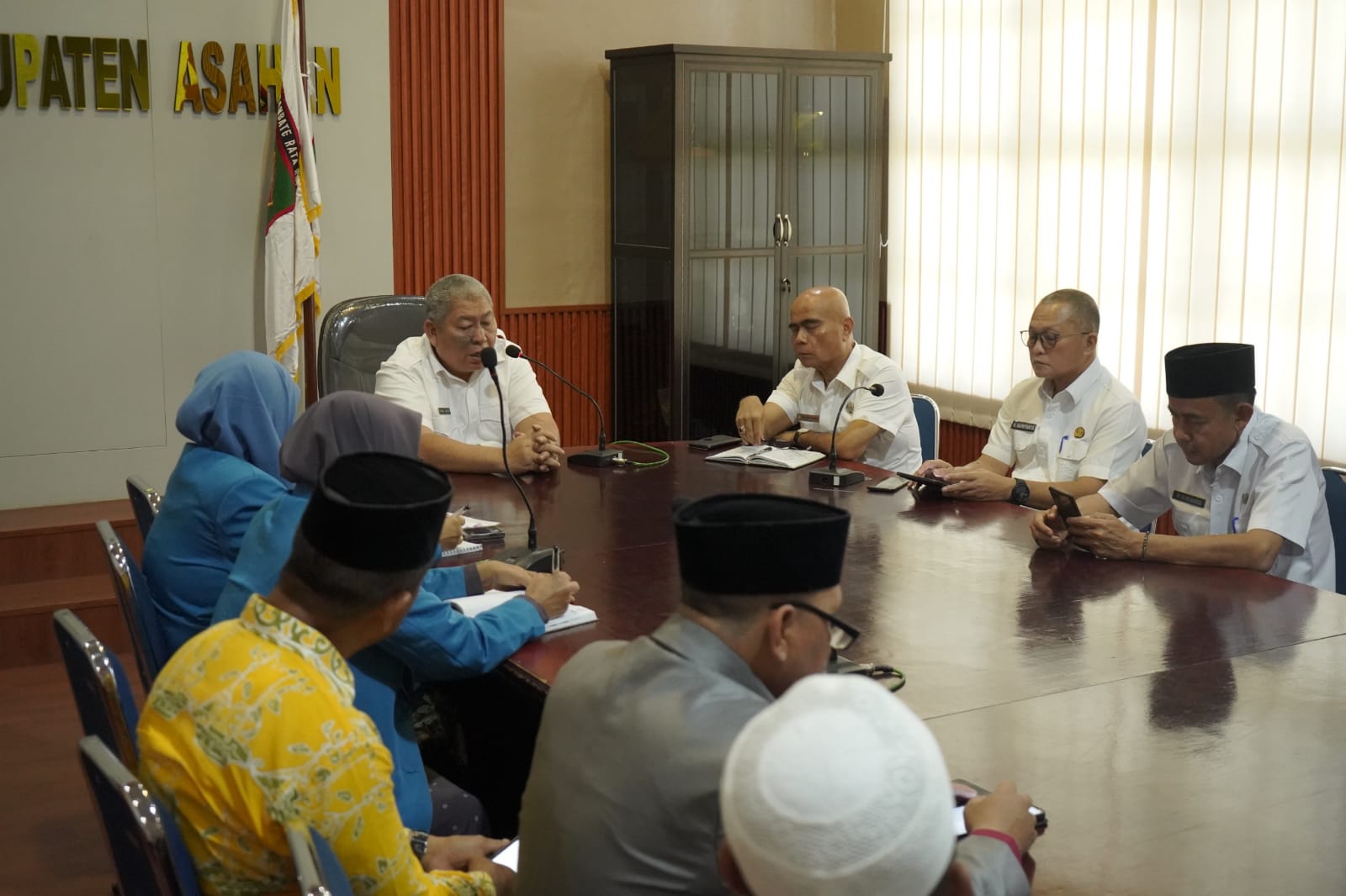 Sekdakab Asahan Zainal Aripin Sinaga menerima kunjungan Rektor IAIDU Asahan dan jajarannya.(dok/ist)