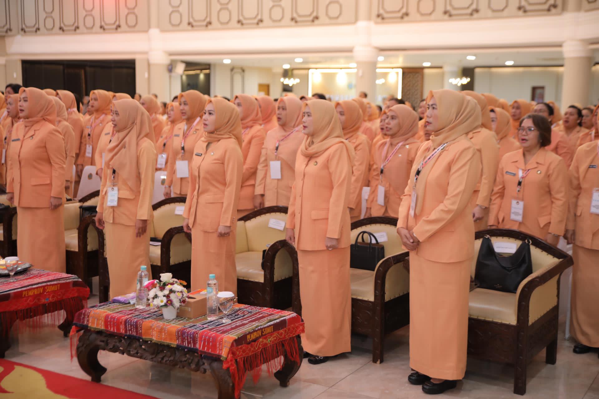 ASAHAN, RELASI PUBLIK – Penasihat Dharma Wanita Persatuan (DWP) Kabupaten Asahan Ny Yusnila Indriati Taufik bersama pengurus lainnya mengikuti pelaksanaan Musyawarah Daerah (Musda) ke V Dharma Wanita Persatuan Provinsi Sumatera Utara.