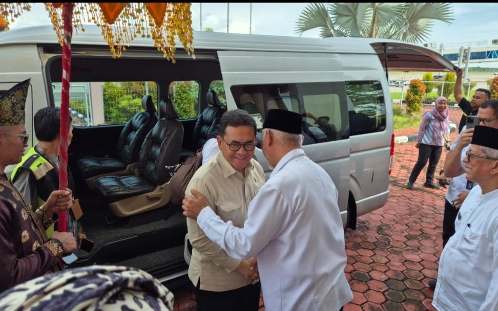 SUMBAR, RELASI PUBLIK – Gubernur Sumatera Barat (Sumbar) Mahyeldi Ansharullah menyambut kedatangan Menteri Perdagangan (Mendag) RI, Budi Santoso di VIP Bandara Internasional Minangkabau (BIM), Kabupaten Padang Pariaman, Jum’at (9/5/2025).