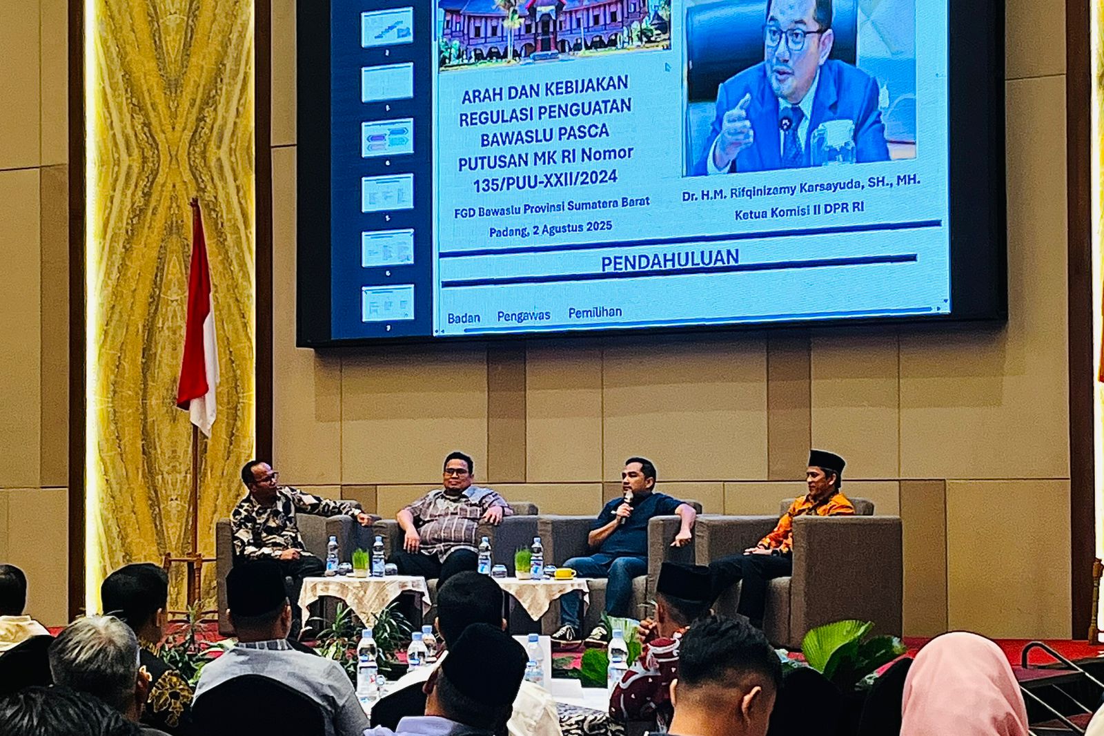 Ketua Komisi II DPR RI, Muhammad Rifqinizamy Karsayuda, hadir sebagai narasumber. Ia didampingi oleh Ketua Bawaslu RI, Rahmat Bagja, dan Ketua Lembaga Konsultasi dan Bantuan Hukum Fakultas Hukum Universitas Andalas, Khairul Fahmi.