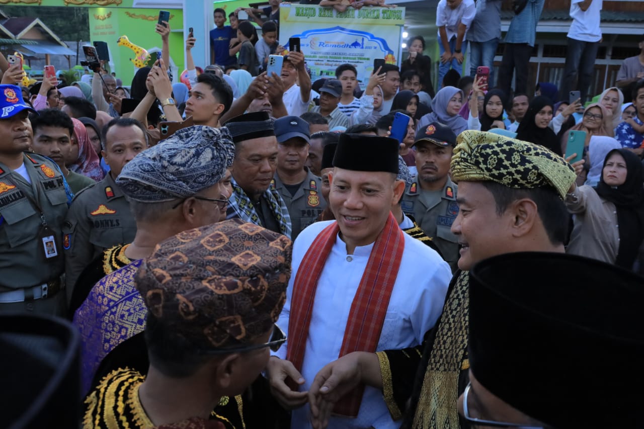 PASAMAN, RELASI PUBLIK – Bupati Pasaman, Provinsi Sumatera Barat (Sumbar), Sabar AS, mengikuti arak-arakan di sepanjang jalan kampung di Kota Lubuk Sikaping, ibukota Kabupaten Pasaman, Jumat (28/2/2025) sore.