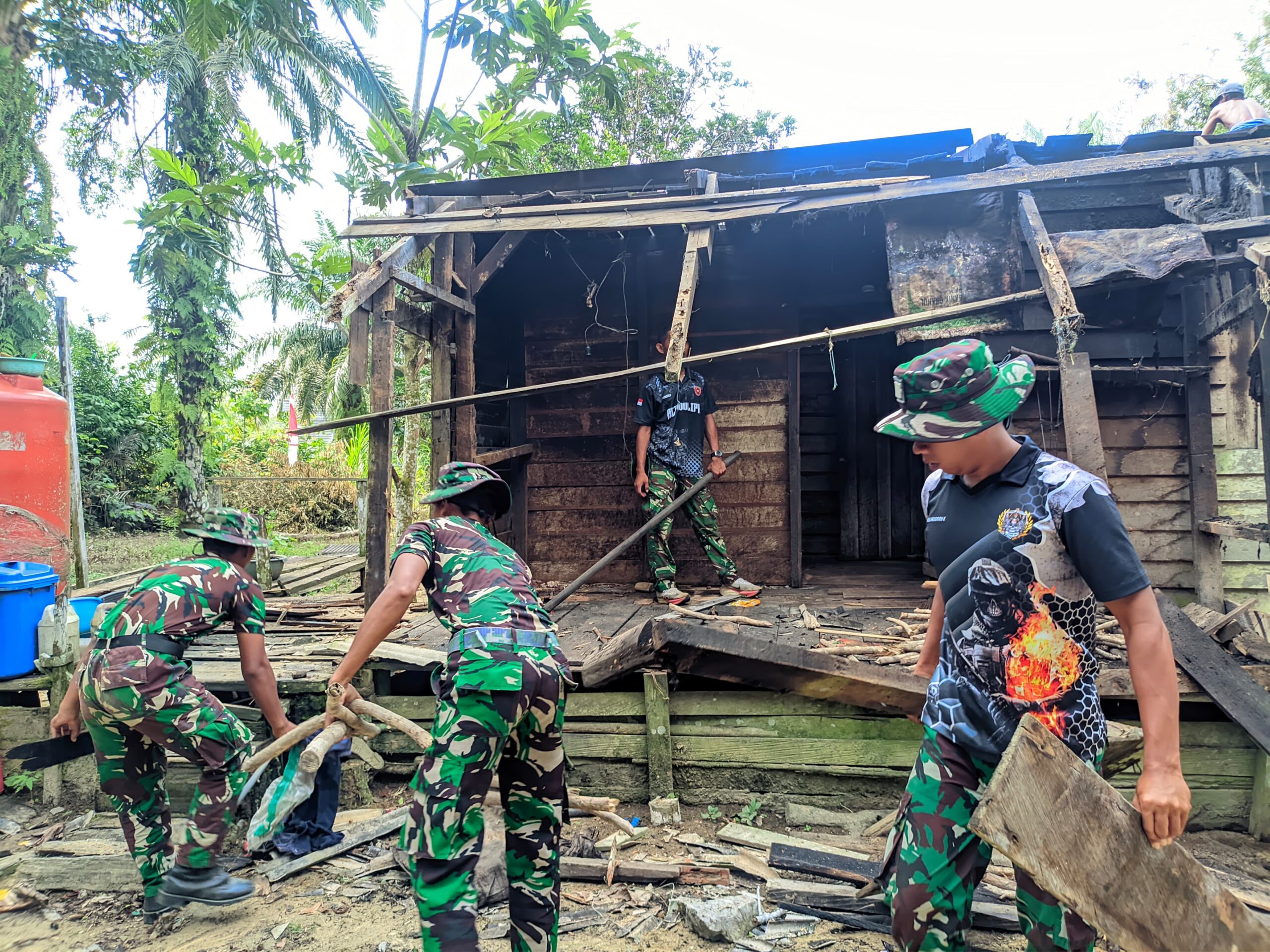 MUARA TEWEH, RELASI PUBLIK – Satgas TNI Manunggal Membangun Desa TMMD ke-126 Kodim 1013/Mtw melaksanakan kegiatan pembongkaran rumah tidak layak huni (RTLH) milik warga di wilayah sasaran TMMD sebagai bagian dari program peningkatan kesejahteraan masyarakat dan pembangunan pedesaan di wilayah Desa Jamut kecamatan Teweh Timur, kabupaten Barito Utara, Senin 13/10/2025.