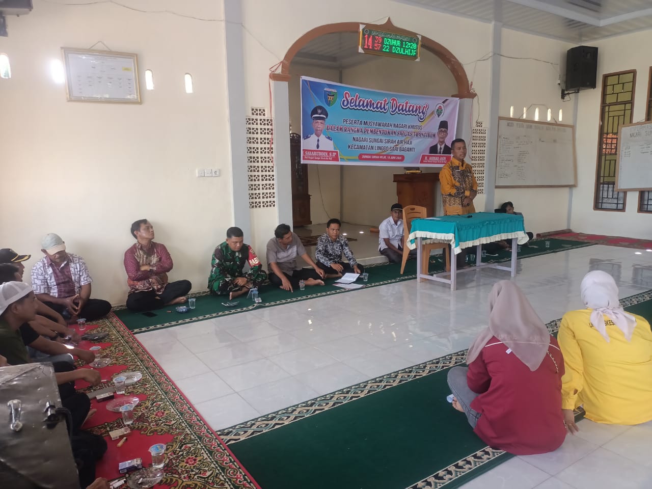 Pembentukan satgas ini dihadiri langsung oleh Wali Nagari Sabaruddin, S.IP, bersama seluruh unsur pemerintahan nagari. Hadir pula Kasi Trantib Kecamatan Linggo Sari Baganti, Andri Ridayah Agus, yang menyampaikan dukungan penuh terhadap pembentukan satgas tersebut.