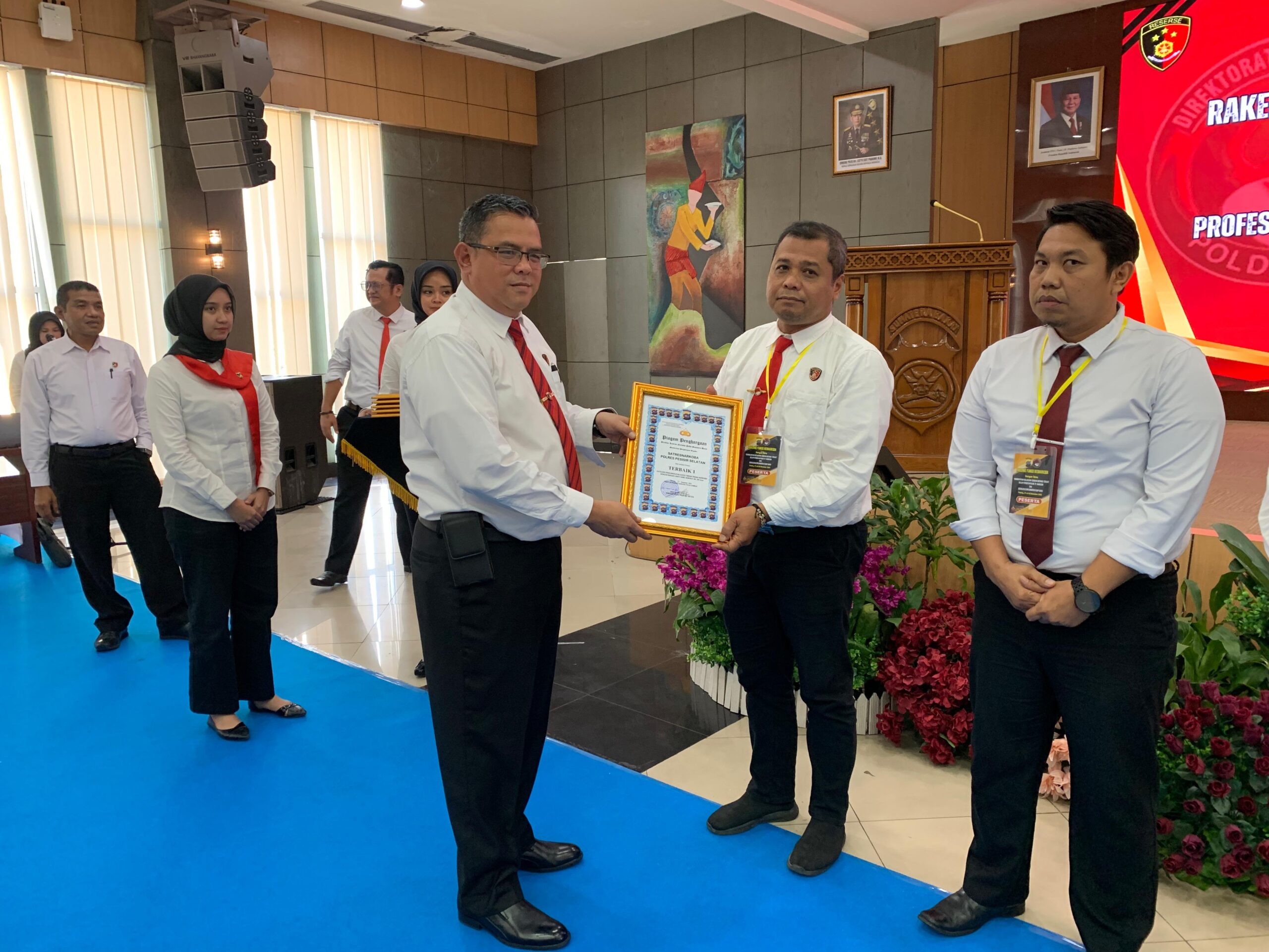 Piagam pengharagaan Terbaik I diserahkan Kapolda Sumbar, melalui Dir Resnarkoba Polres Pessel Kombes Pol Wedy Mahadi, S.IK, M.AP. Kemarin pada acara Rakernis Reserse Narkoba Polda Sumbar TA 2025. Jumat 19 Desember 2025.