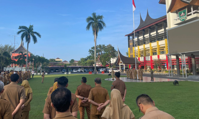 SUMBAR, RRLASI PUBLIK – Usai resmi dilantik sebagai Sekretaris Daerah Provinsi Sumatera Barat (Sekdaprov Sumbar) definitif, Arry Yuswandi memimpin apel pagi perdananya di halaman Kantor Gubernur Sumbar, Senin (16/6/2025).