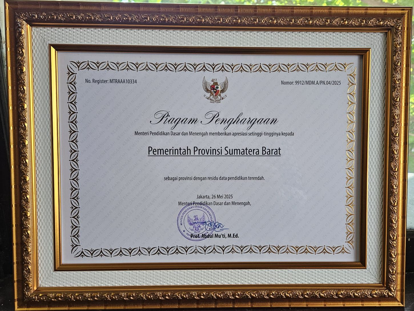 Sumbar Raih Penghargaan Nasional Residu Data Pendidikan Terendah