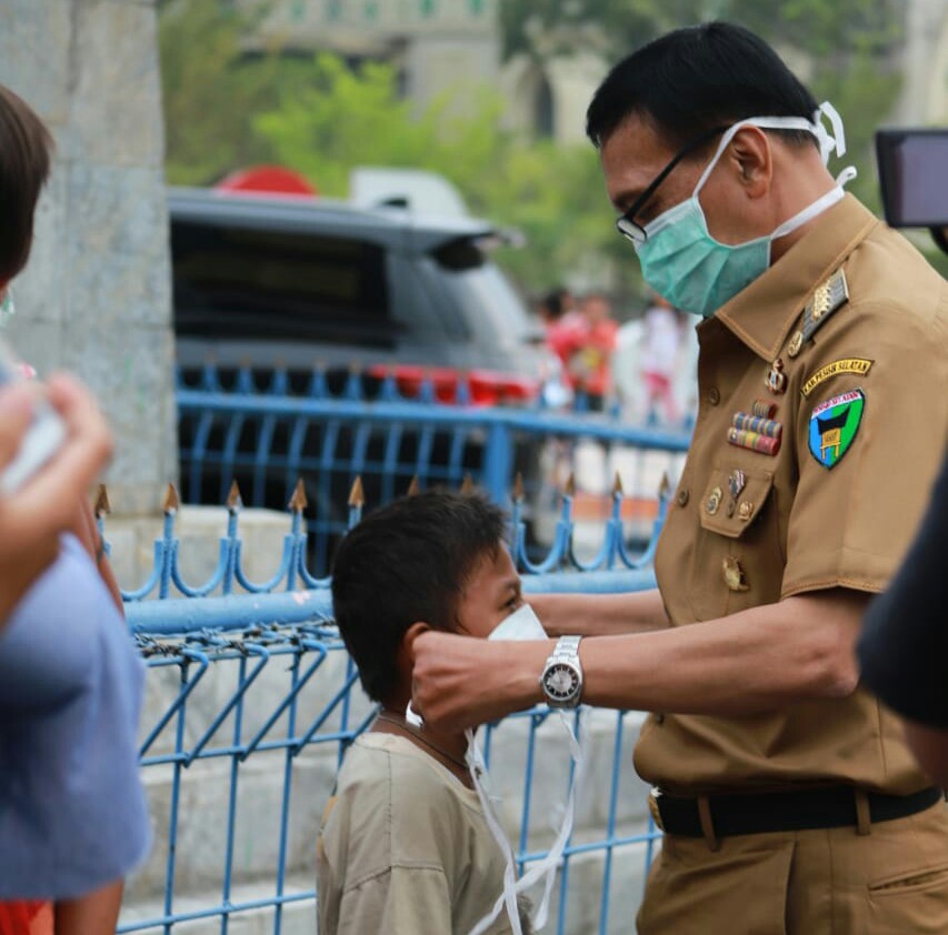 Lantas, bupati pun menasehati anak itu agar selalu memakai masker jika berada di luar ruangan sampai kondisi udara kembali normal.