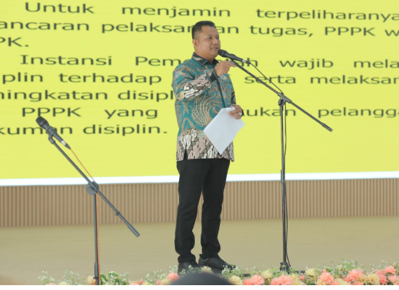 ASAHAN, RELASI PUBLIK – Wakil Bupati Asahan Rianto SH, MAP membuka orientasi PPPK 2025 dengan tema Membangun ASN Berintegritas dan Profesional melalui Penegakan Disiplin, di Aula Melati kantor bupati setempat, Kamis (09/10/2025).
